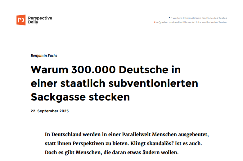 Perspective Daily: „Warum 300.000 Deutsche in einer staatlich subventionierten Sackgasse stecken“